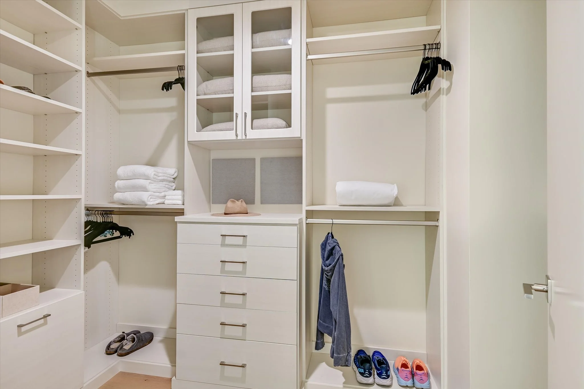 The flexible floor plan offers a large open-plan living, dining, and gourmet kitchen space that all embrace the view. An adjacent den could serve multiple purposes: a work-from-home space, a reading nook, or a guest overflow. At the end of the day, you’ll enjoy retreating to your west-facing primary bedroom to have one last glance out over the cityscape and hills beyond. Wrapped in luxury, the spa bath features a soaking tub, walk-in shower, and double vanities; the adjacent walk-in closet is outfitted with custom storage. A second bedroom also enjoys a view and an en-suite spa bath. The unit also comes with two parking spaces, valet parking, and 24-hour concierge service.